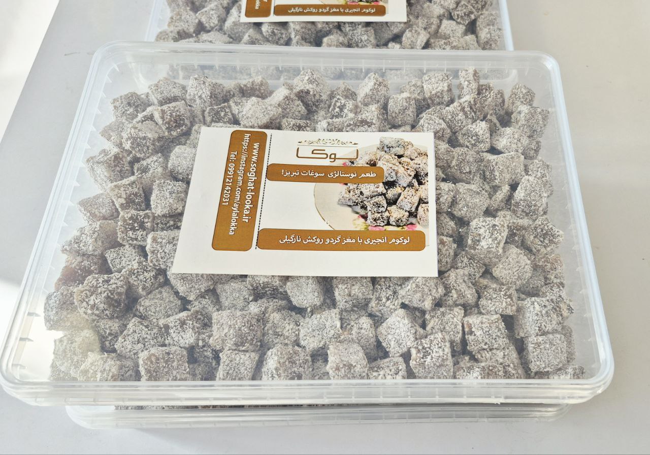 لوکوم انجیر و گردو با روکش نارگیل – طعمی از دل طبیعت تبریز