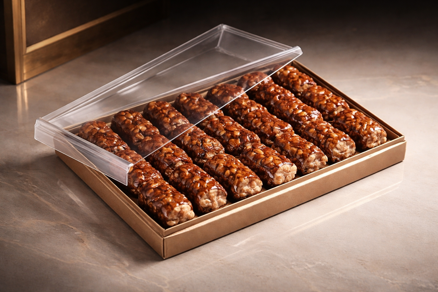 سوجوق تبریزی طعم گردویی یعنی تجربهی یک شیرینی سنتی ایرانی با طعم گردو و شیره انگور طبیعی ترد، عطرآگین، اصیل و نشوندهندهی بهترین سنتهای شیرینیپزی تبریز. این محصول نه فقط یه میانوعده خوشمزهست، بلکه یک انتخاب عالی برای مهمونی، هدیه و سوغات هم هست .